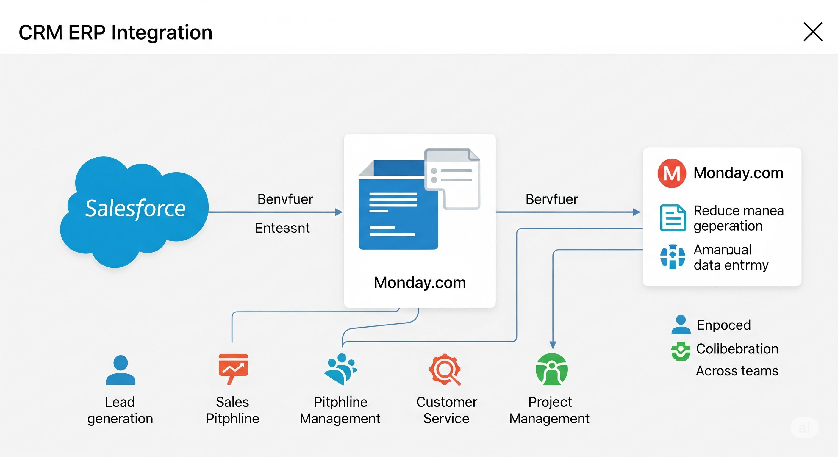 we specialize in seamlessly integrating your CRM and ERP platforms, including powerful solutions like Salesforce and Monday.com, to create a unified ecosystem that empowers your sales, marketing, finance, and operations teams.